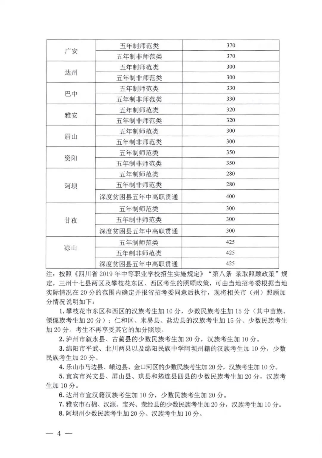 以四川省2019年五年制高职录取控制分数线为例: