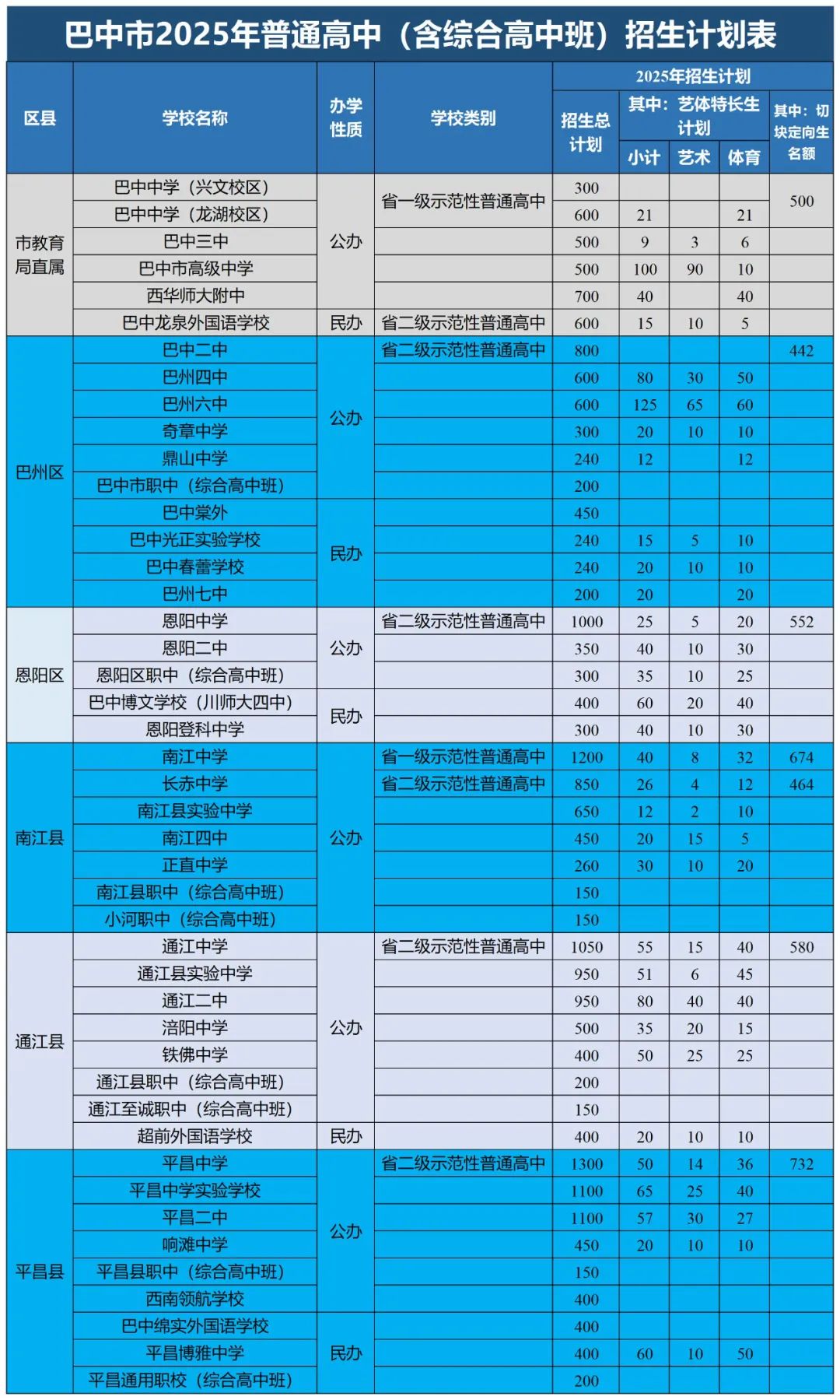 1.公、民办普通高中艺术体育特长生面向全市招生,民办普通高中学校面向全市招生。