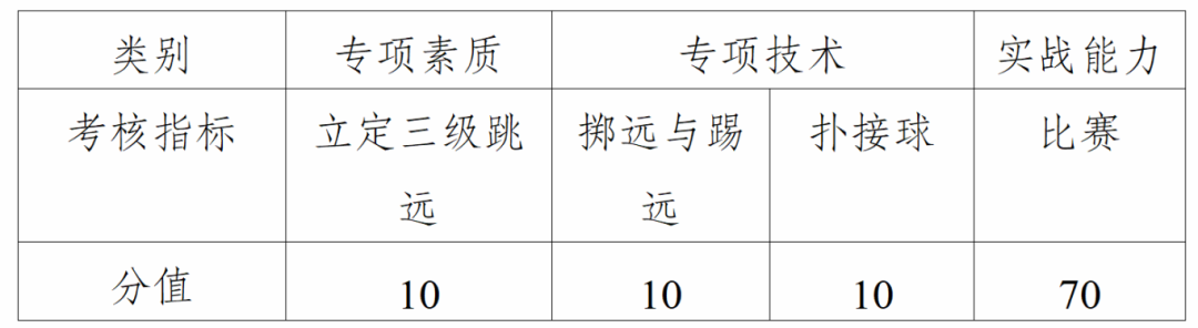 3.项目班(足球预备队和体育特长班)各项专业测试成绩满分为100分。考生必须完成全部测试项目考核,方为有效。