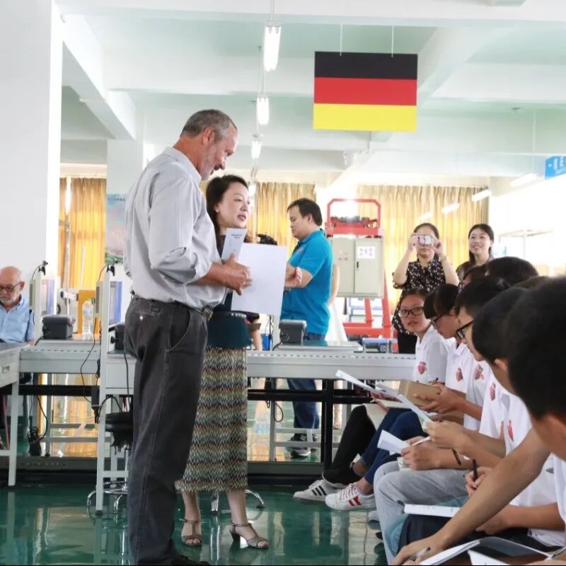 学校“德国带薪双元制留学项目”试点班开办于2021年8月,引进德国原版教学体系,采用语言培训、德适培训、带薪学习等原汁原味德国职业教育体系。首届试点班4名学生于2022年12月顺利通过欧标德语等级考试,其中2名学生通过德国爱科特学院和德国罗曼集团面试,获得德国物流专员学位以及相应工作岗位。今年4月,4名同学已开启他们的三年德国带薪学习之旅,学习期间学费全免,并且每人每月将获得1100欧元生活补贴。