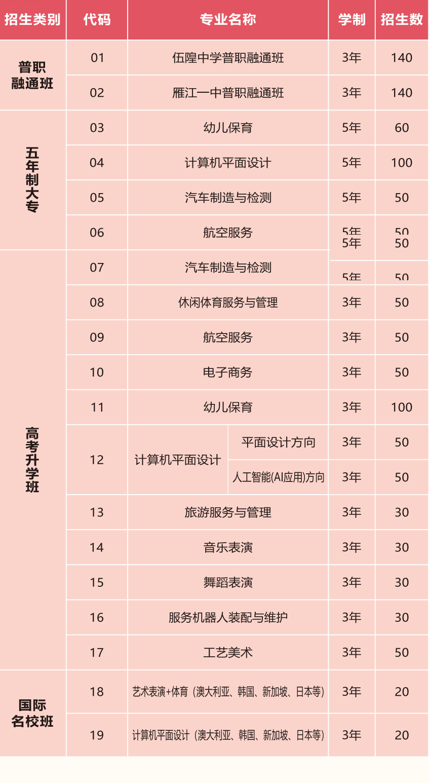 一、三年制五年制均面向全省招生,普职融通班面向全市招生。