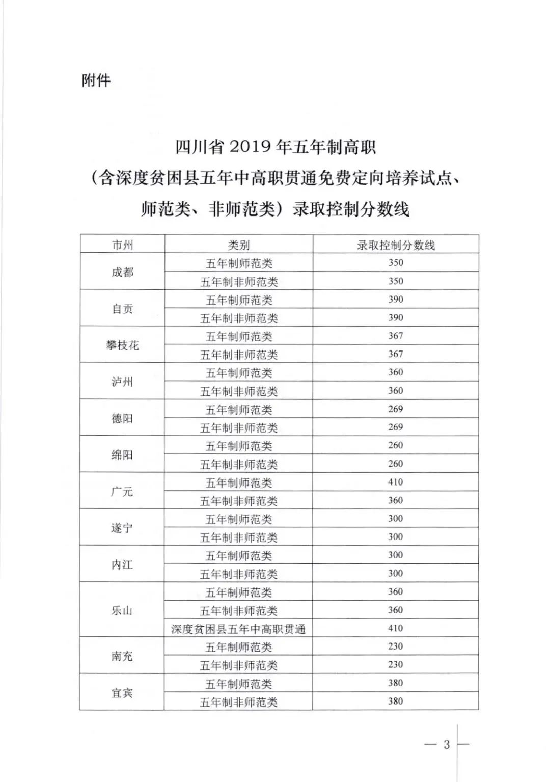 以四川省2019年五年制高职录取控制分数线为例: