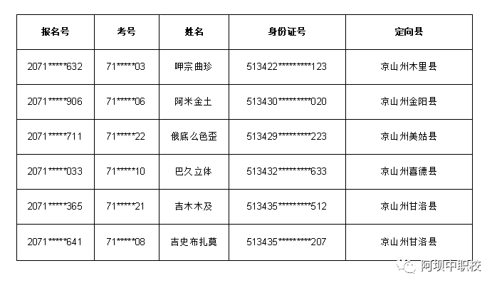 - 2021-11-13 阿坝州中等职业技术学校2021年五年制录取名单及补录通知