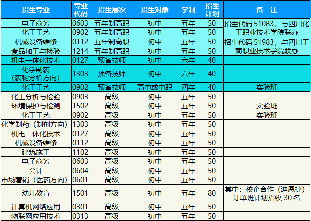 备注:招生专业及计划以四川省教育厅、四川省人社厅批复或公布的为准