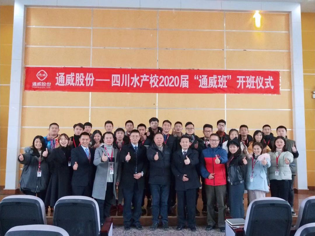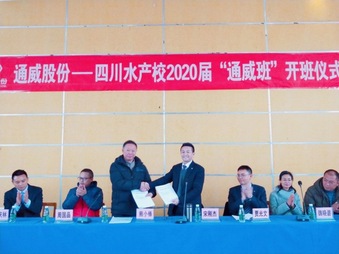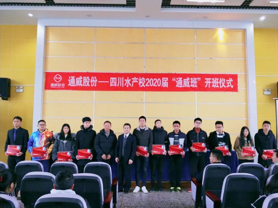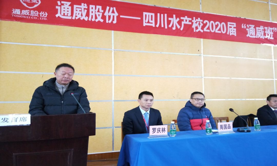 12月14日下午,“2020届通威班”在四川省水产学校举行了隆重的开班仪式。四川省水产校党委书记熊小锋、通威股份副总裁兼华西战区总裁宋刚杰、通威股份水产市场部部长贾光文等出席仪式。