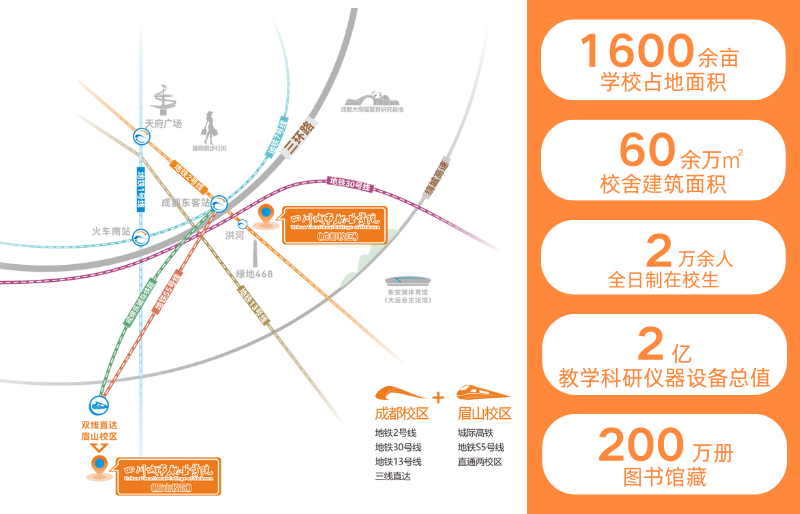四川城市职业学院创办于1999年,在原四川师范大学信息技术学院、四川师范大学外事学院10年本科办学的基础上,2007年经四川省教育厅批准,2008年教育部备案设置的全日制民办高等职业院校。学校地处成都、眉山,两校区占地1600余亩,校舍建筑面积60余万平方米,交通便利,地铁三线直达。学校办学实力一流,现有全日制在校生2万余人,图书馆藏近200万册教学科研仪器设备总值近2亿元,建有校外实习实训基地229个,校内实践教学实验实训室233个。