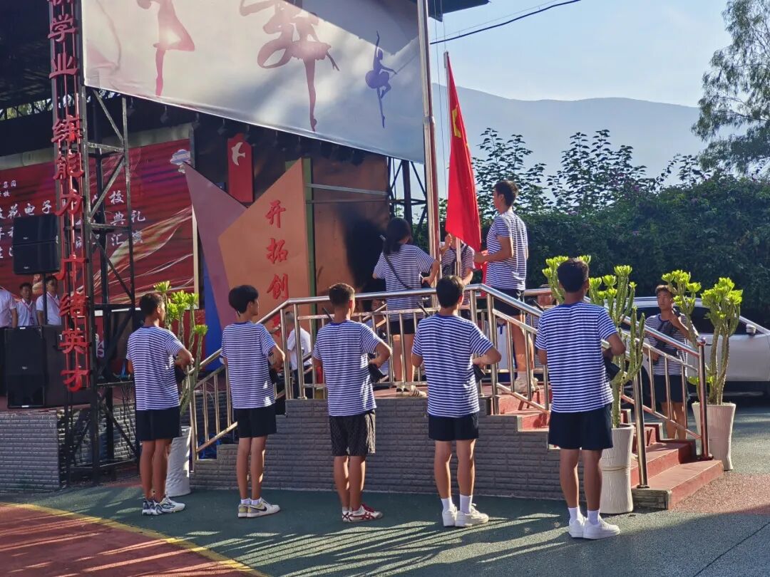 庄严的升旗仪式上,全体师生肃立行礼。在雄壮的国歌声中,鲜艳的五星红旗冉冉升起,激发了每个人的爱国情怀和使命担当。