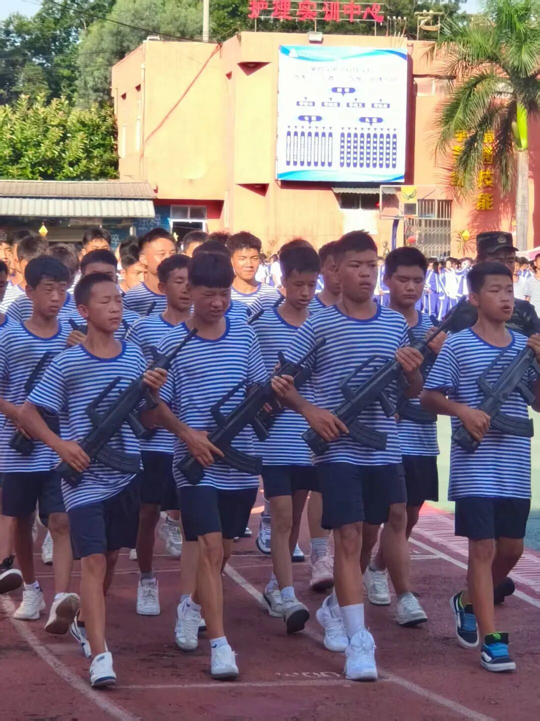 随着《分列式进行曲》响起,各方队迈着整齐划一的步伐依次通过主席台。同学们目光坚定、姿态挺拔,每一个动作都凝聚着12天来的汗水与付出,展现了电子科技学校学子的卓越风采。
