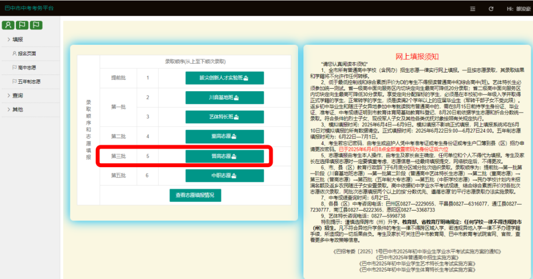 四、 中考志愿填报方式