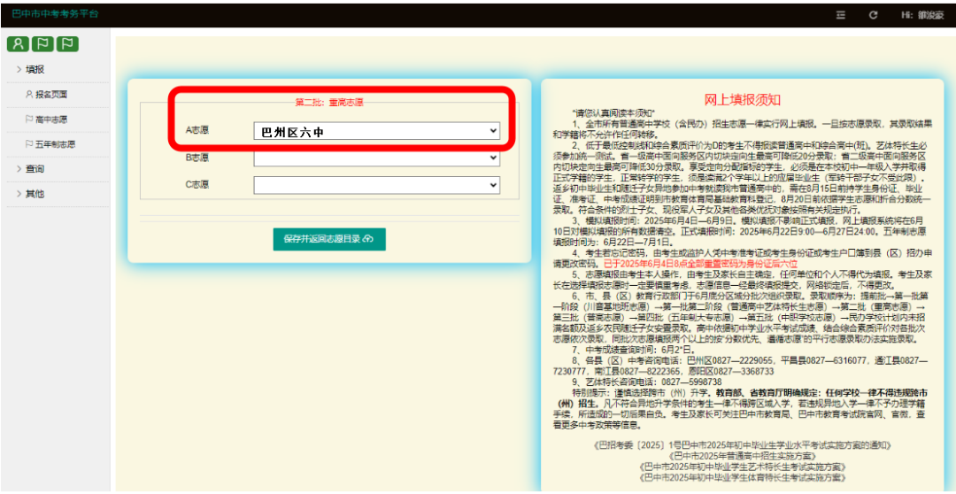 - 2025-10-05 巴中市巴州区第六中学2025年中考志愿填报指南