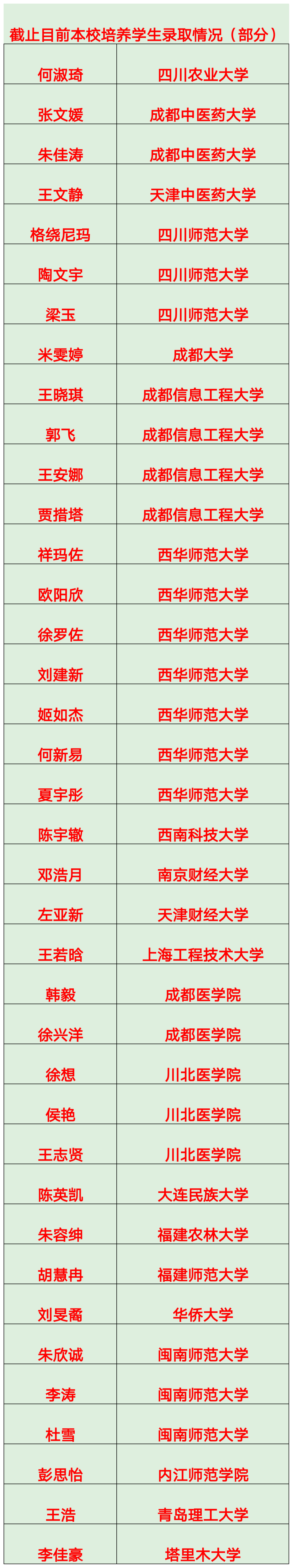 (截止7月24日本校培养学生录取情况)