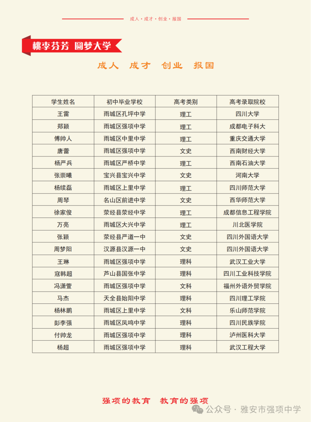 - 2025-10-07 雅安市强项中学2025高中招生简章