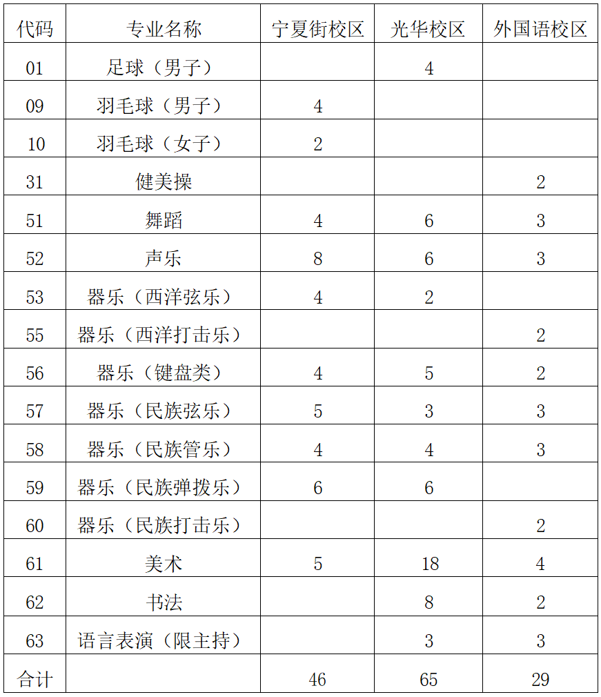 注意:三校区所有艺体考生均在宁夏街校区进行资格审查。