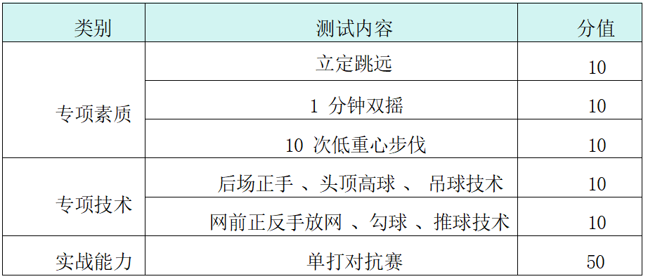 3.单打对抗比赛项目测试总分为50分,按照比赛技评等级、名次等内容进行综合赋分。