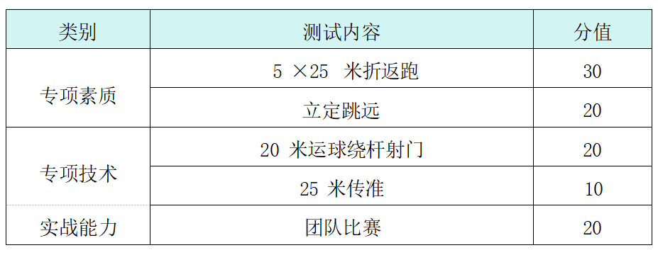 1.考生自备运动装备(如:运动鞋,无学校或机构名称的运动服),必须佩戴护腿板。