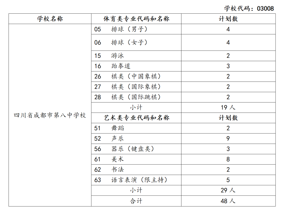 - 2025-10-11 四川省成都市第八中学校2025年高中艺体特长生招生简章
