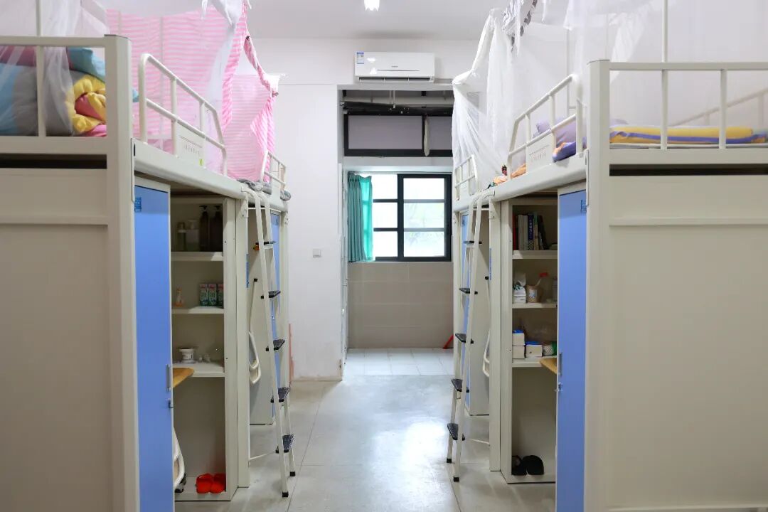 学生住宿条件舒适,每间寝室4-6人,拥有独立卫生间,配备空调和直饮水,安全舒适的环境、科学的管理模式、贴心的成长关怀、丰富的宿舍文化,为学生打造舒适便捷的生活环境。